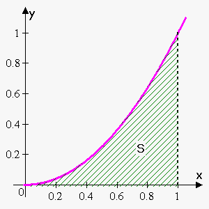 If we now make $$${n}$$$ very large, we will find the required area $$${S}$$$: $$${S}=\lim_{{{n}\to\infty}}{S}_{{n}}=\lim_{{{n}\to\infty}}{\left(\frac{{1}}{{3}}+\frac{{1}}{{{2}{n}}}+\frac{{1}}{{{6}{{n}}^{{2}}}}\right)}=\frac{{1}}{{3}}$$$ (this is just the limit of the sequence).